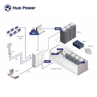 Ofrecemos servicios personalizados para el Sistema de Almacenamiento de Energía Portátil, el Sistema de Almacenamiento de Energía Modular y el Sistema de Almacenamiento de Energía Modular con la marca Hua Power , lugar de origen China, 10 Años de garantía, Tipo de batería LFP, Grado de protección IP54, Capacidad nominal Personalizar según la demanda y Tamaño del contenedor 20HC/30HC/40HC.